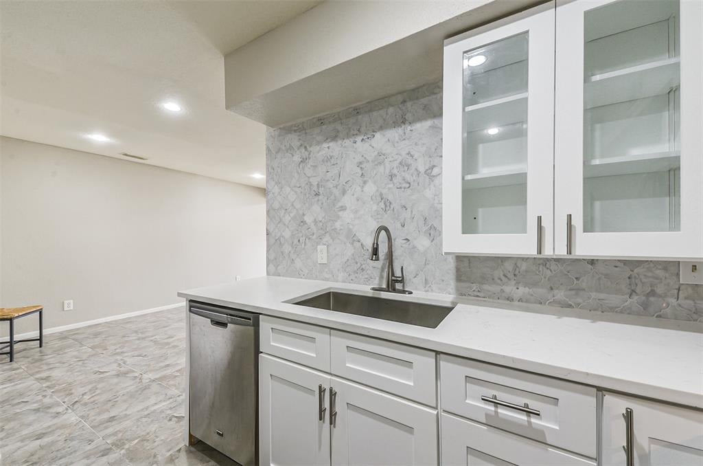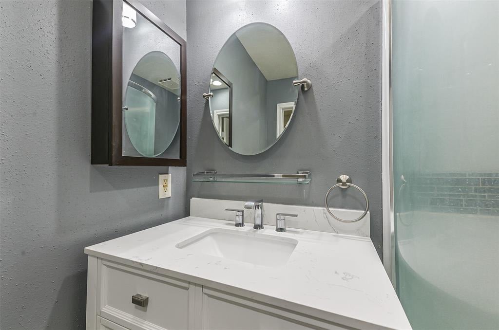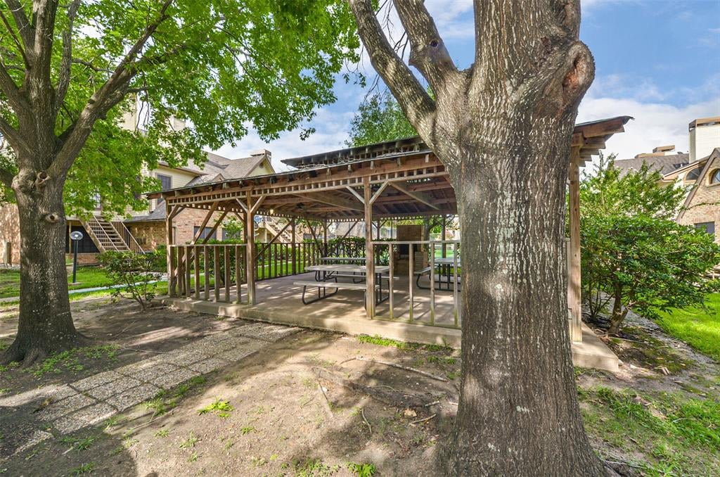 Beautifully remodeled two-bedroom condo located in the Medical Center. Welcoming from the very first step, this condo features a study/den which leads to the garage. Bright & naturally lit living area has access to a covered patio overlooking the tennis court. Cozy up next to the fireplace in the generously-sized living room with a dining room combo. A gorgeously remodeled kitchen features quartz countertops, a mini-fridge, stainless steel appliances, white cabinetry, & a backsplash there to compliment it all. Enter the oasis offering a custom walk-in closet and a renovated bathroom with a walk-in shower. The secondary bedroom is located upstairs with an en-suite bathroom featuring a new tiled shower and a massive walk-in closet. This gated community amenities include a pool, tennis courts, and a gazebo. Conventionally located within minutes to the Medical Center, Museums, Herman Park, and local restaurants, this home is not one to miss!