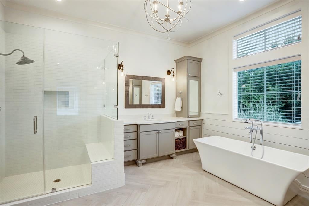 Impressive modern farmhouse-style home in the heart of the Heights zoned to award-winning Travis Elementary. Stunning designer finishes and impeccable attention to detail throughout. Gorgeous kitchen features a large island, open shelving, wine refrigerator, soft close drawers/doors, custom tile backsplash, and Bosch stainless appliances including a refrigerator. First-floor living with a fantastic outdoor space boasts a covered patio and private yard. Second floor features a true primary retreat with a sitting room, luxurious primary bath and remarkable closet. Included is a secondary bedroom w/en-suite bath, office nook, and spacious laundry room equipped with storage and a sink. Third floor presents a charming bedroom, full bathroom, and game room complete w/ a large covered terrace, perfect for entertaining. Development of six homes in gated community w/ additional guest parking. This home is truly a must-see!